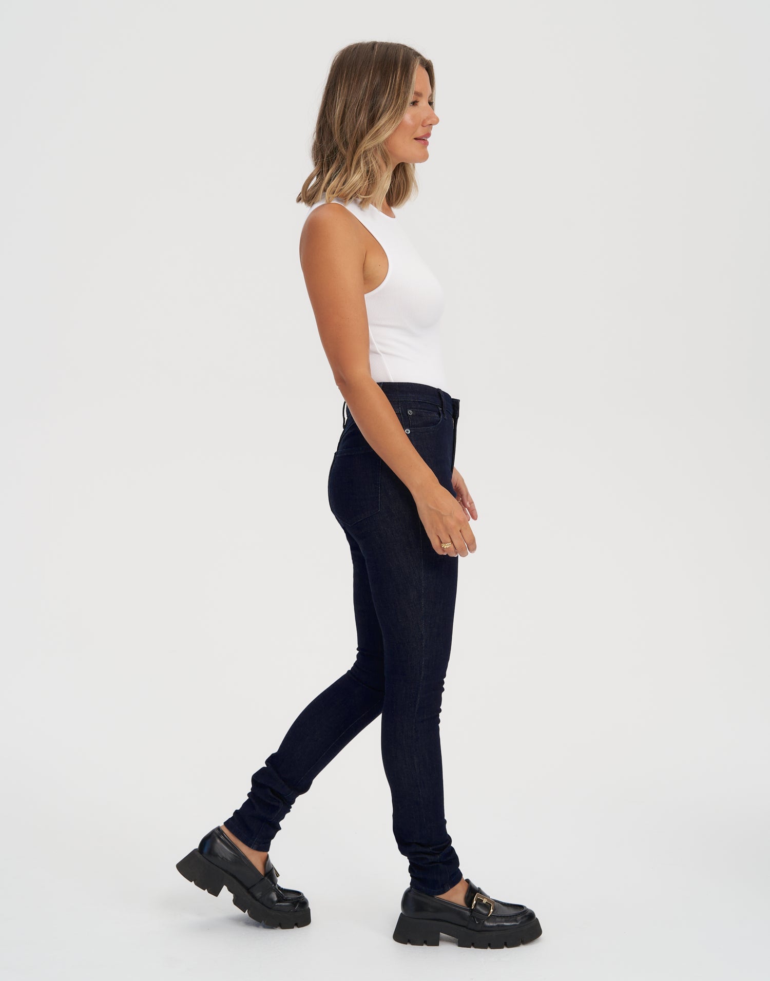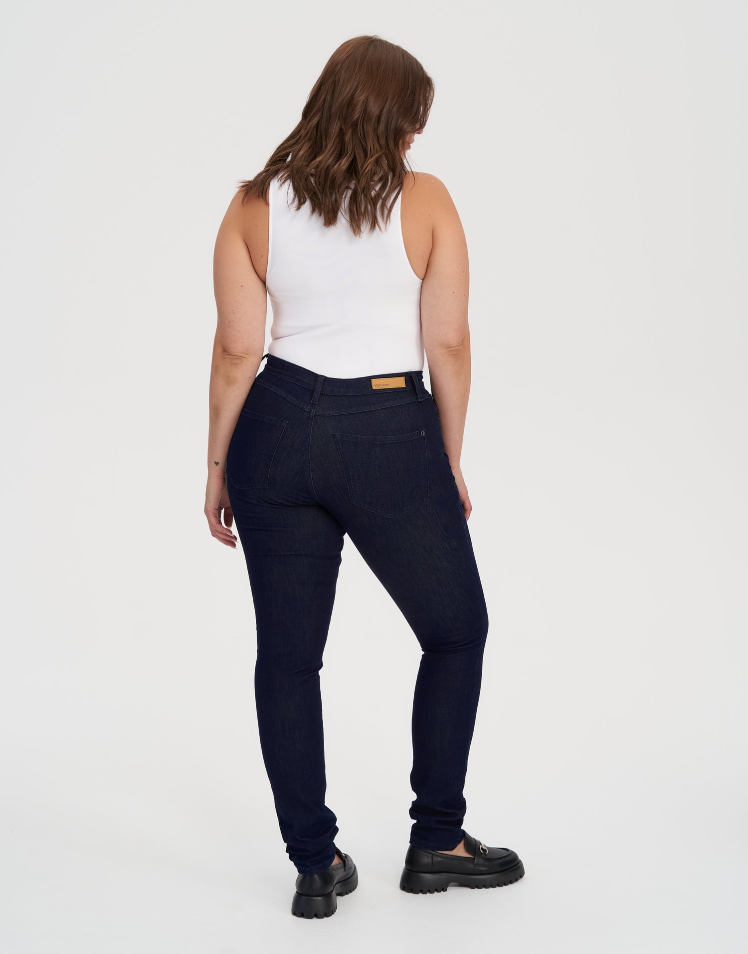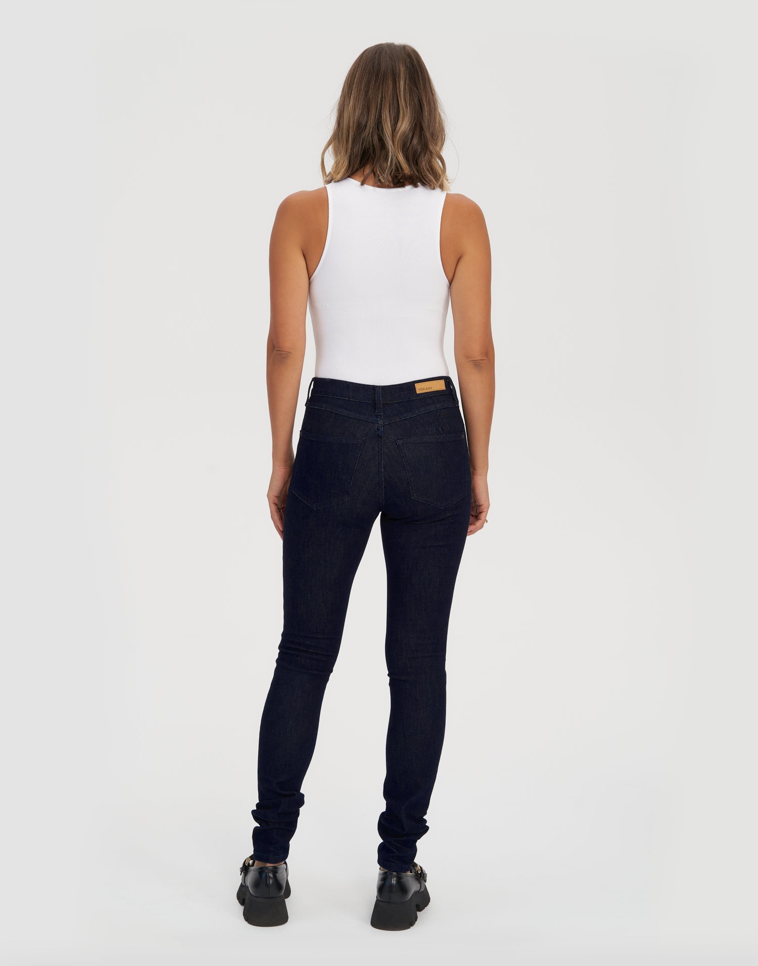Ce jean skinny taille classique est d'un délavé indigo foncé avec des finitions épurées et ...