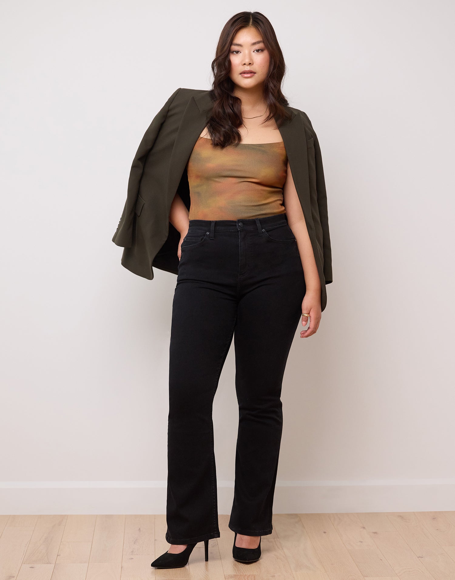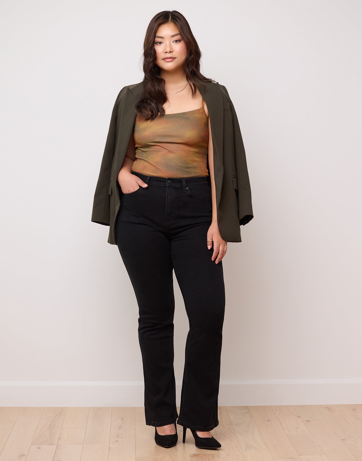 Ce jean noir délavé est doté d'une taille haute avantageuse. Son entrejambe plus long de 32'' est parfait pour être p...