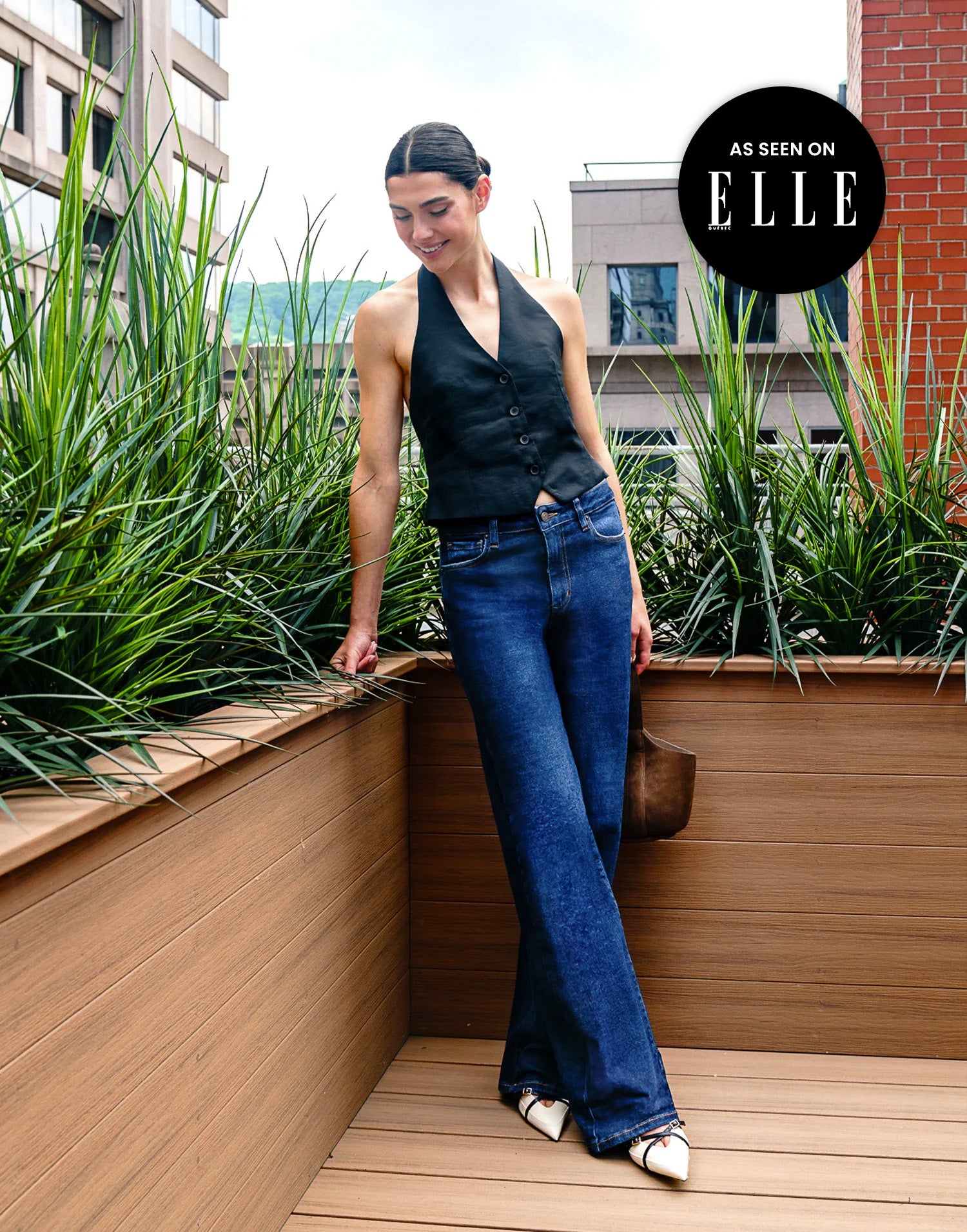 Découvrez Maia, le nouveau denim à jambe large : un jean délavé foncé qui accompagne vos mouvements et vous tient au courant. Conçu pour le confort et adapté à tous les codes vestimentaires, ce modèle à jambe longue apporte une touche d'élégance instantanée à chaque pas.