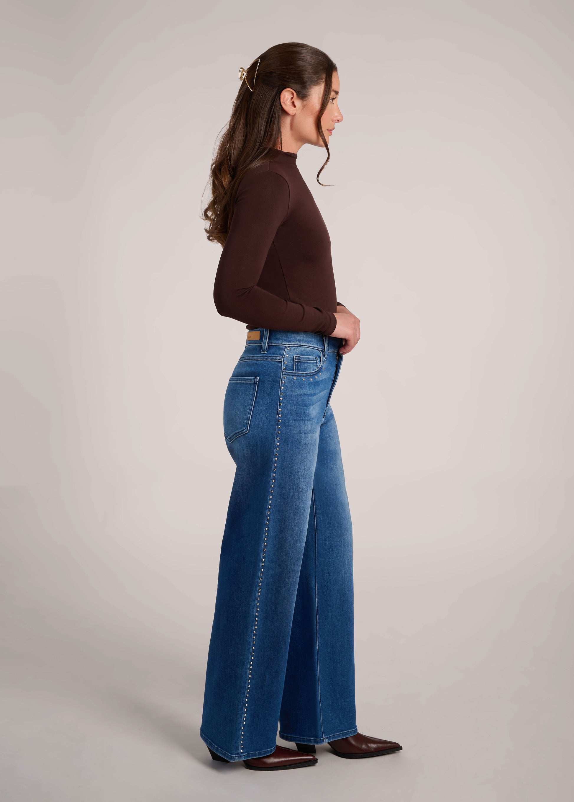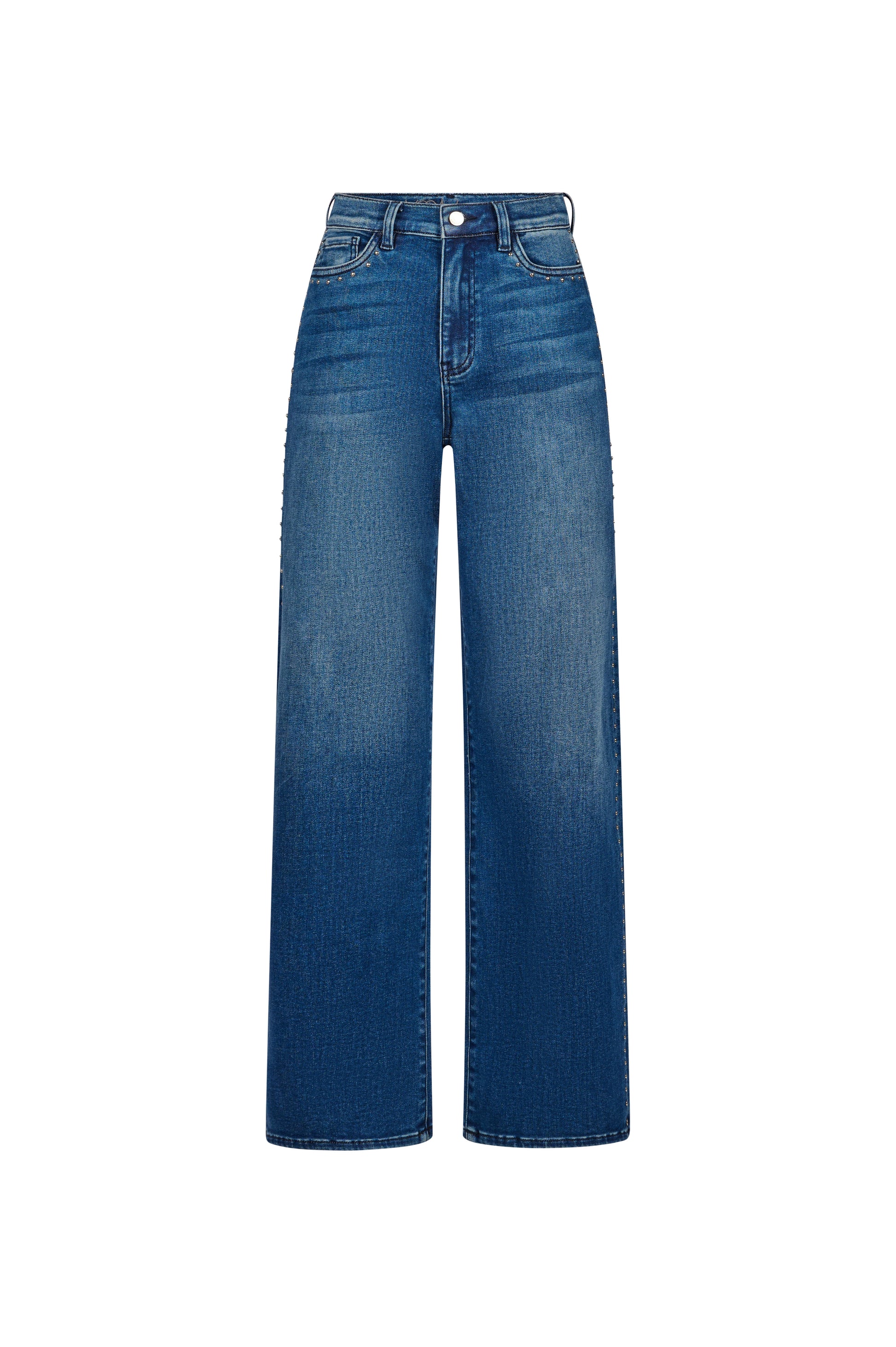 Découvrez Orpheus, un modèle à jambe large. Il s'agit d'une version améliorée de notre coupe emblématique Blue Didley. L'entrejambe plus long de 81 cm offre une grande liberté de style, et les poches cloutées raffinées apportent juste ce qu'il faut d'éclat pour habiller votre tenue sans effort excessif.