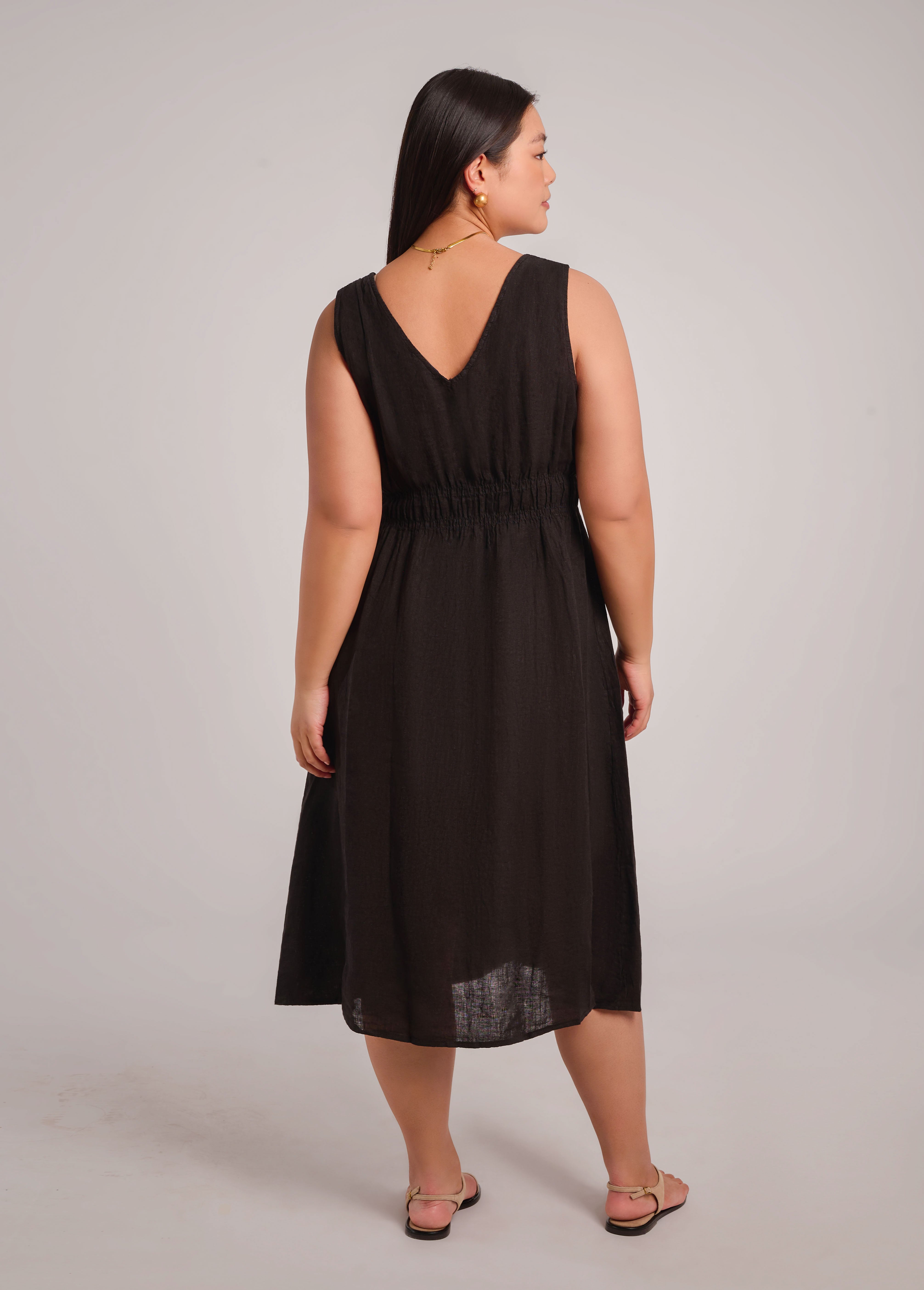 Découvrez Luna, notre superbe nouvelle robe midi ! Inspirés de notre populaire débardeur en lin à col en V, nous avo...