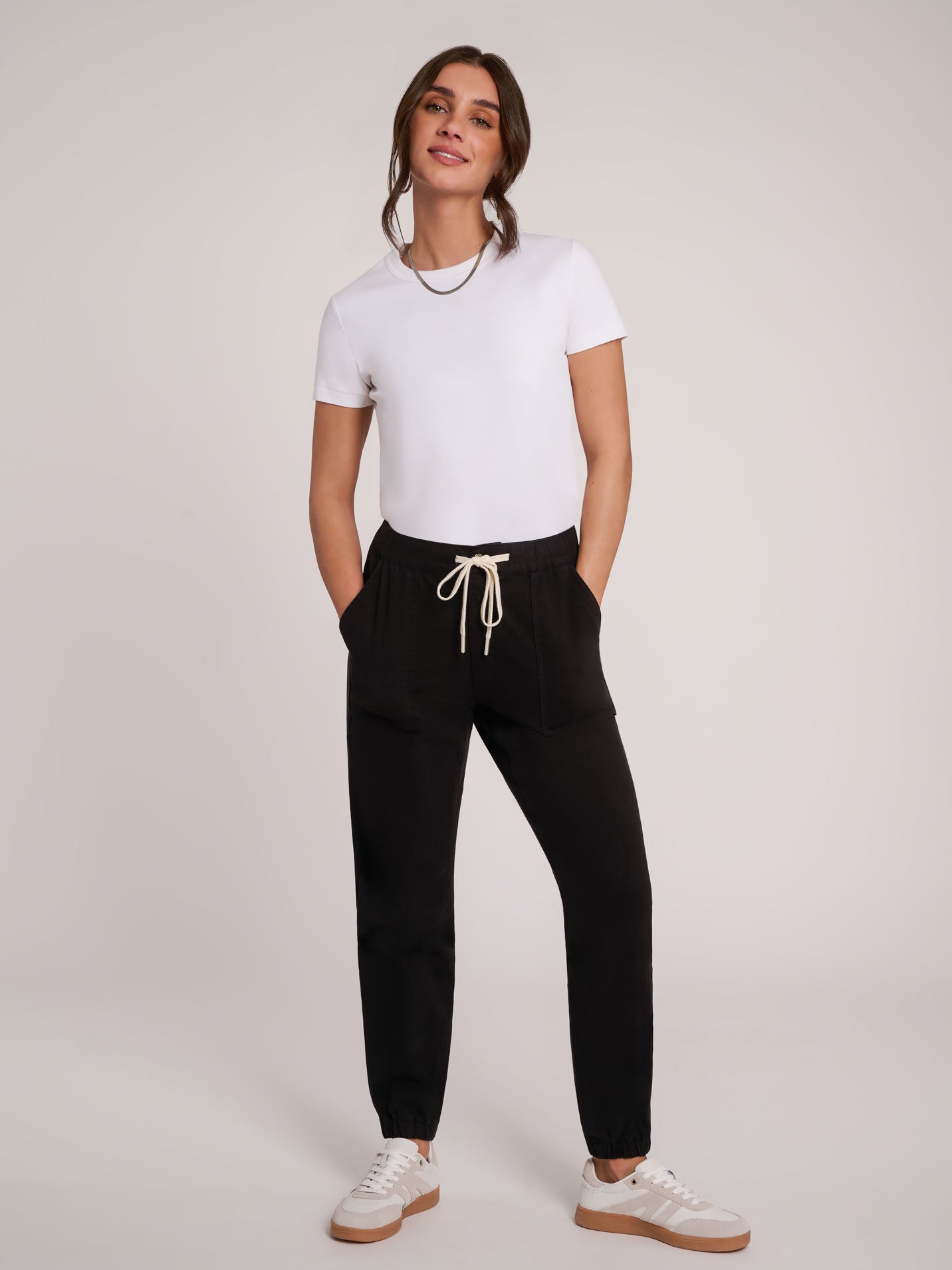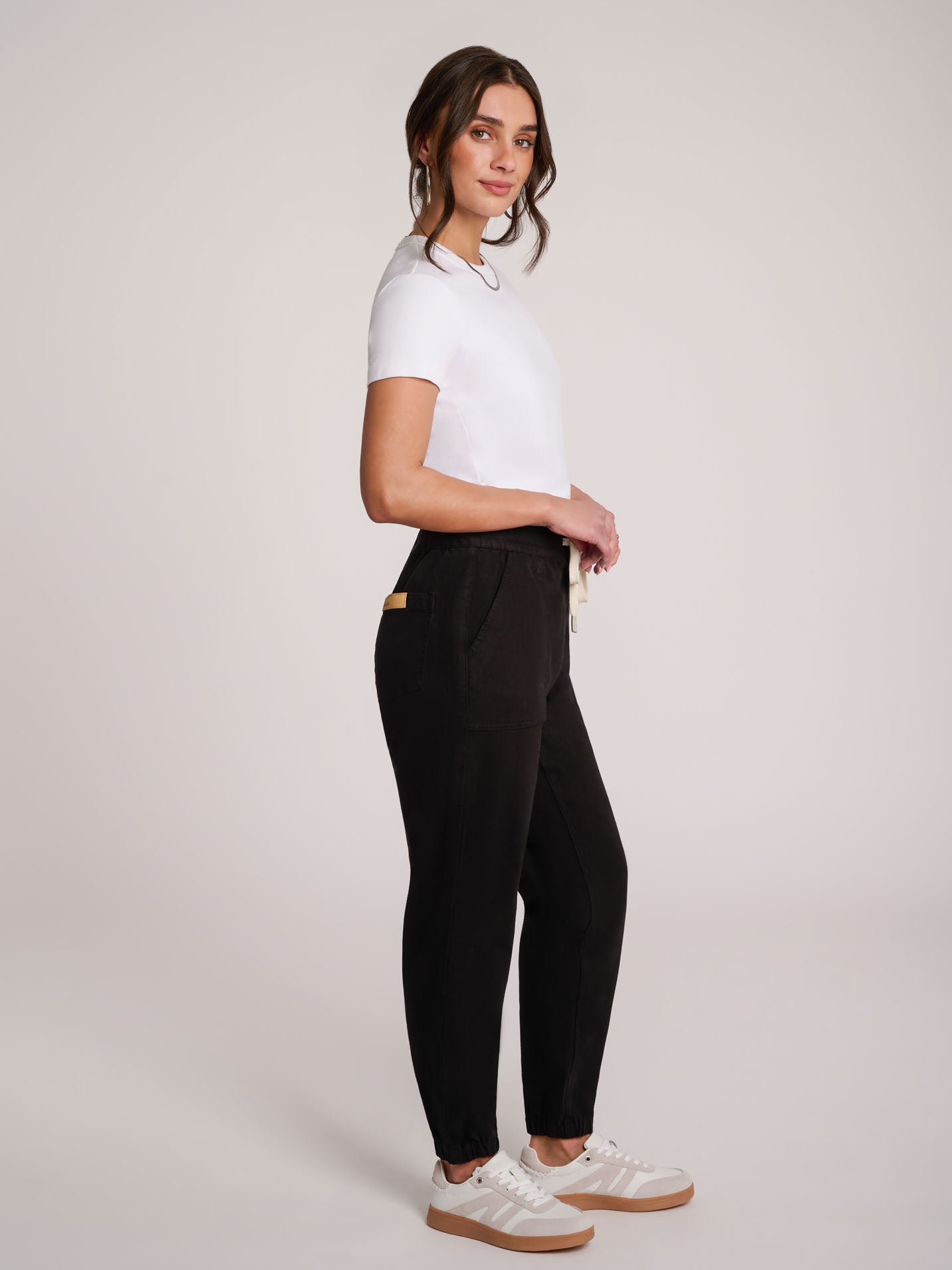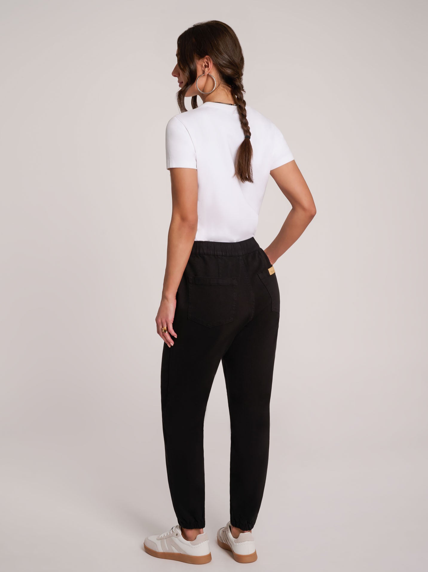 Découvrez votre nouveau pantalon de jogging en jean incontournable ! Ces beautés taille haute dans un noir foncé apportent le mélange parfait de confort et de style. Dotés d'un subtil détail délavé à l'acide autour de la taille, des poches et des bordures, ils ajoutent juste ce qu'il faut de style. Avec une taille élastique réglable, un cordon de serrage blanc impeccable, des poches inclinées et des poches cargo latérales, ce pantalon de jogging est aussi fonctionnel que tendance. Dotés de poignets élastiques, ils sont idéaux pour se prélasser à la maison ou faire des courses tout en gardant un look chic et ultra confortable sans effort.