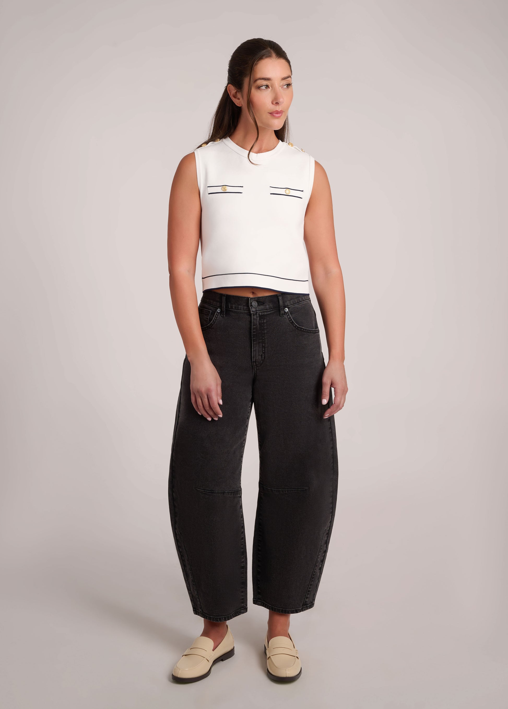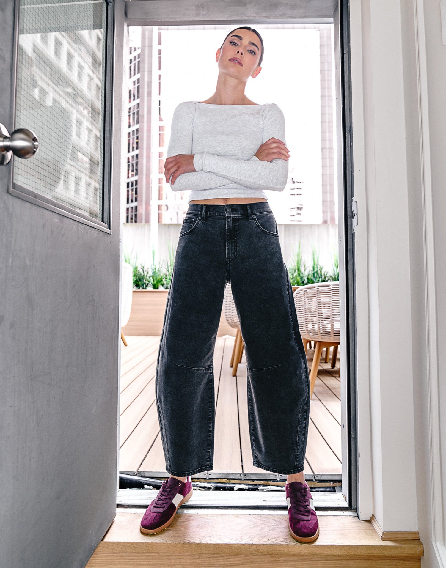 Créé à partir du jean Horseshoe, le Danica a tout ce qu'il faut. Sa coupe ample et incurvée se termine par une coupe légèrement fuselée et courte, avec un ourlet net. Sa silhouette oversize s'accorde parfaitement avec un débardeur élégant ou une chemise boutonnée.