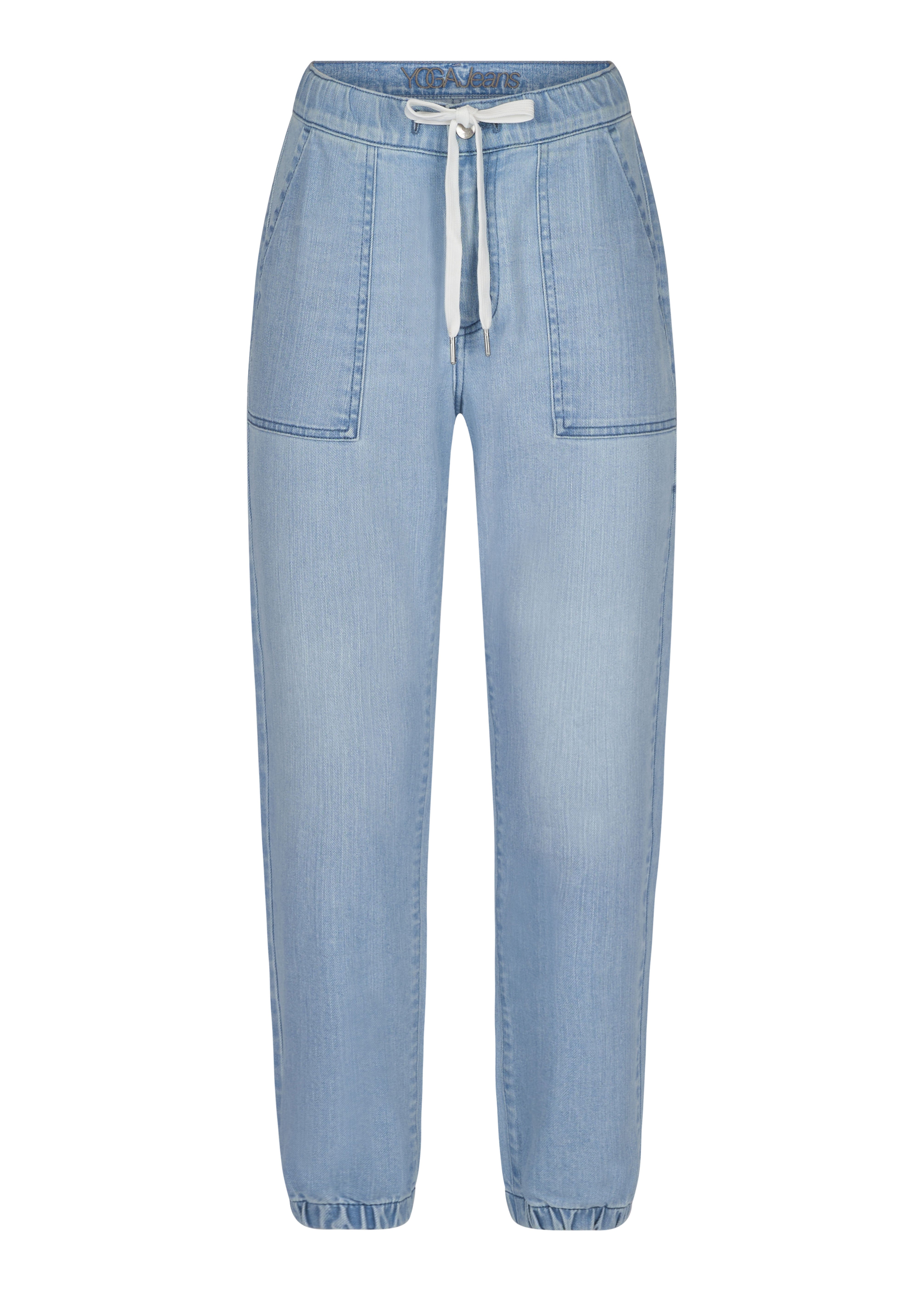 Ce jogging en denim taille haute de couleur bleu clair présentent un effet légèrement délavé, une taille élastique, ...