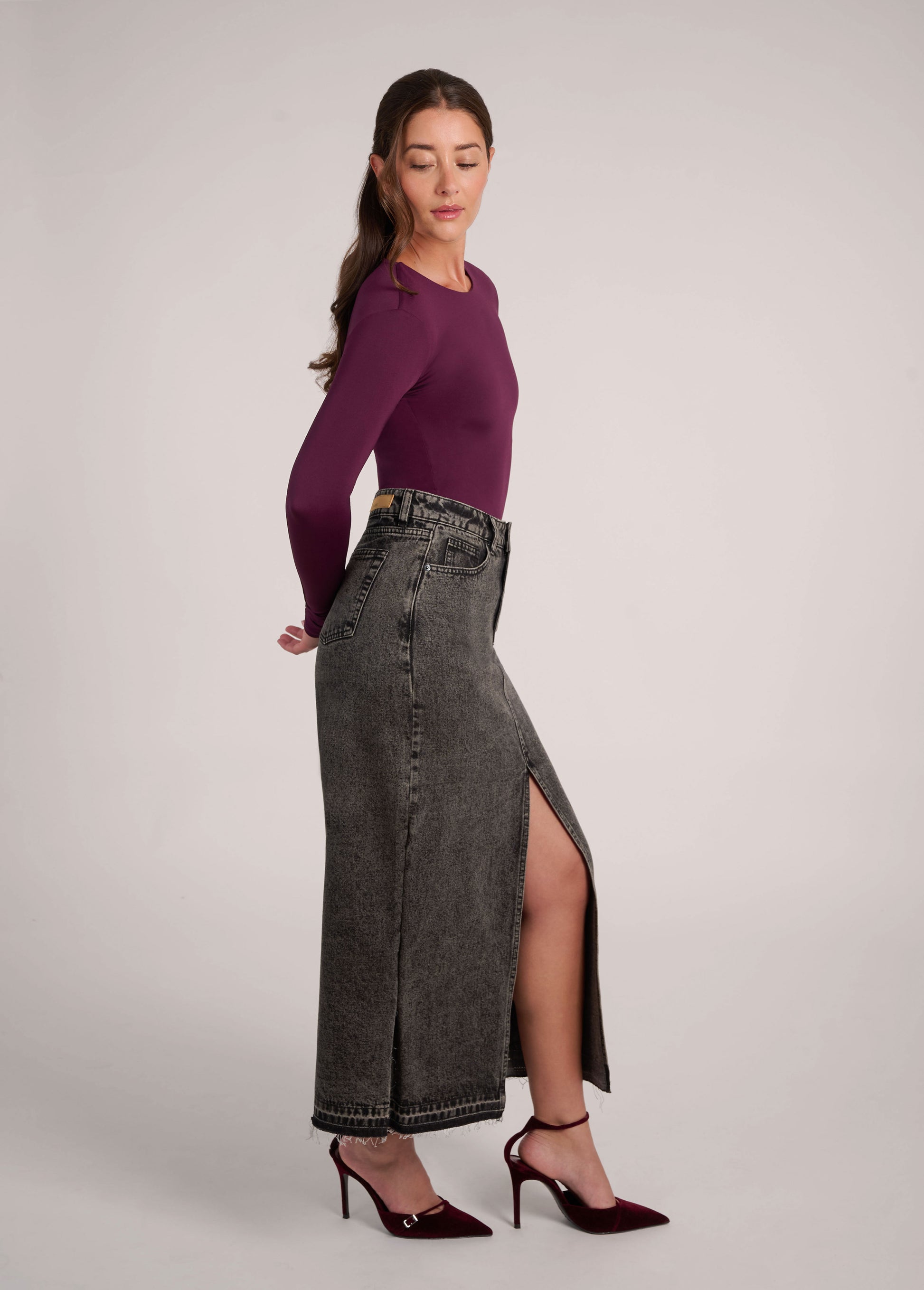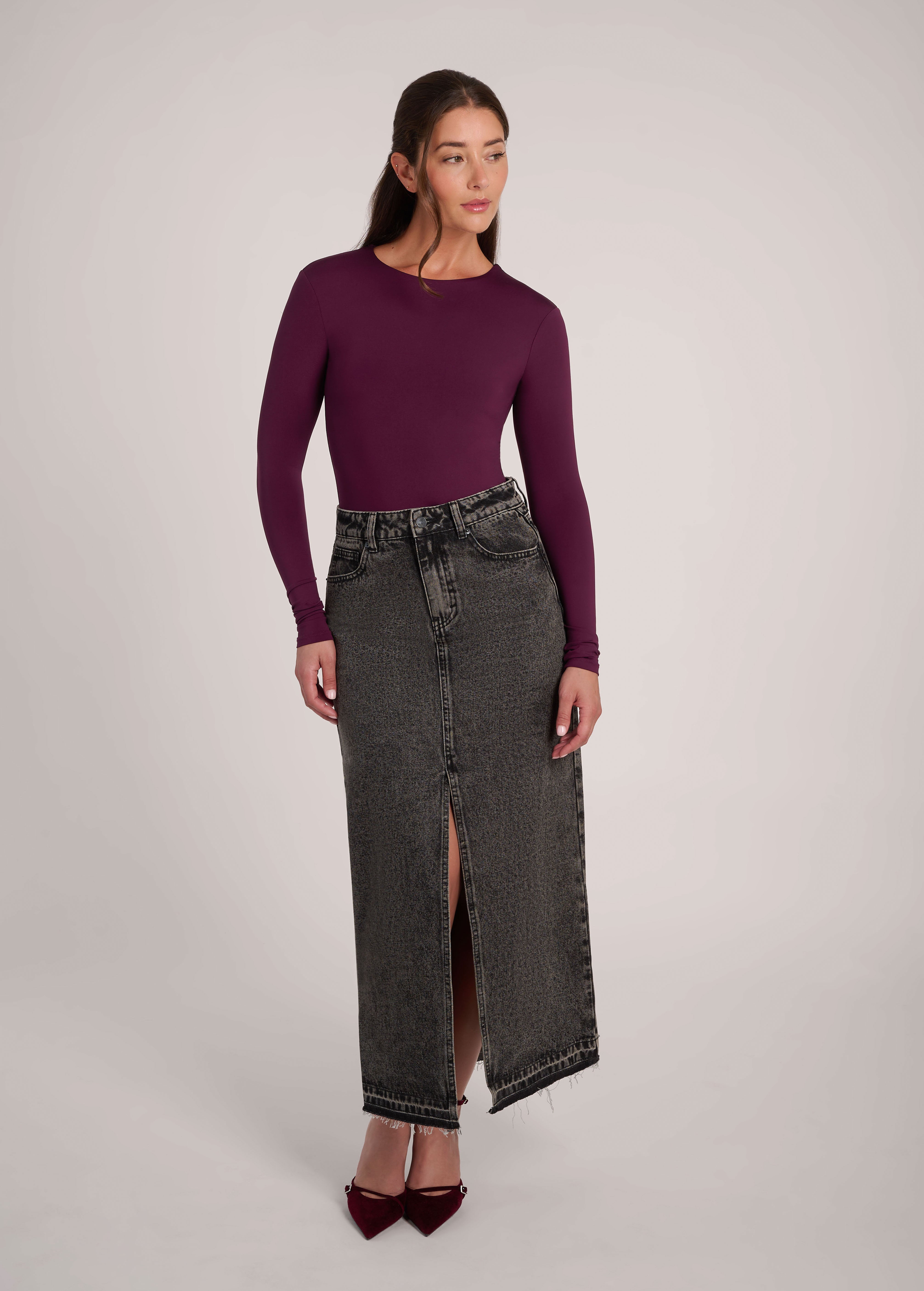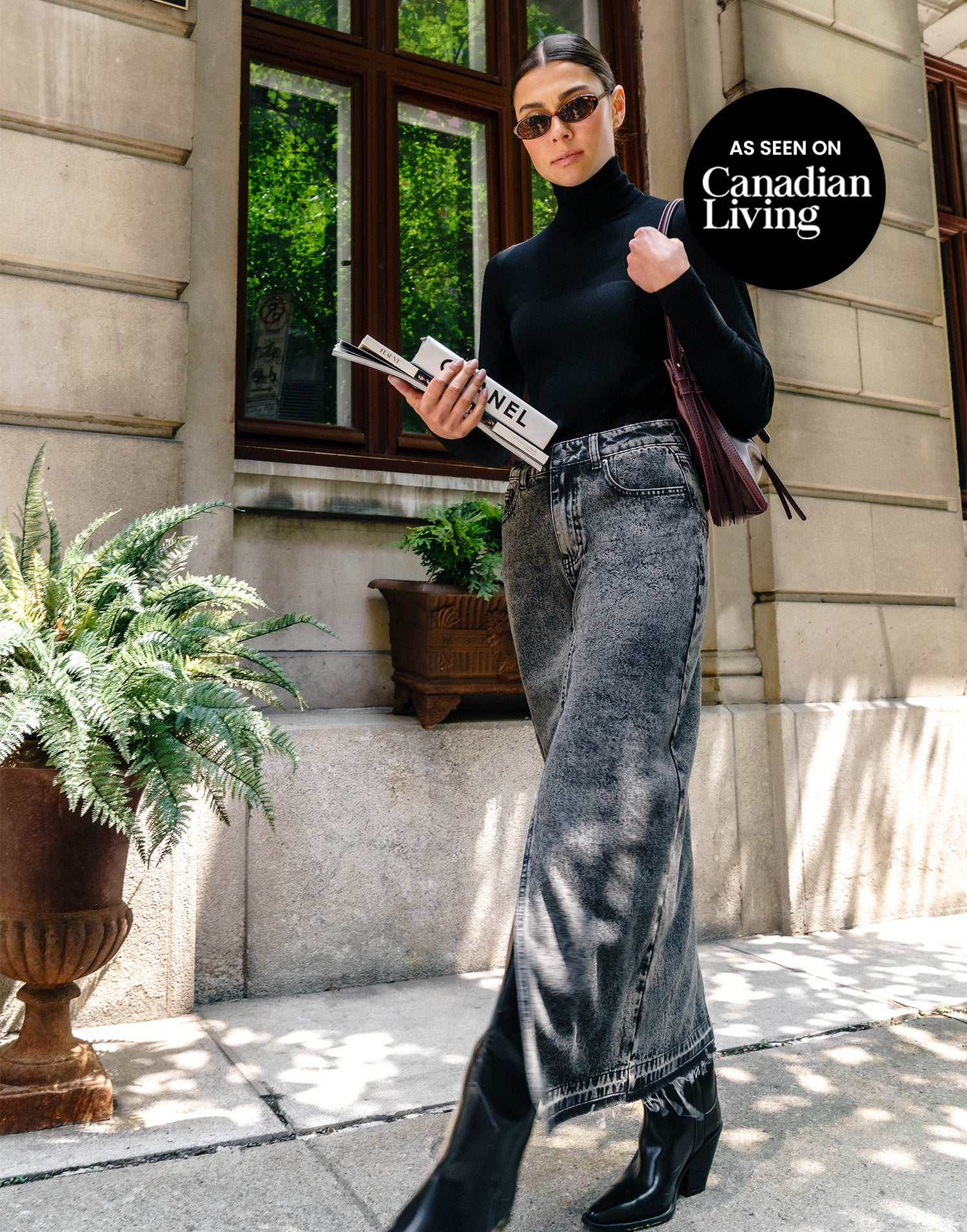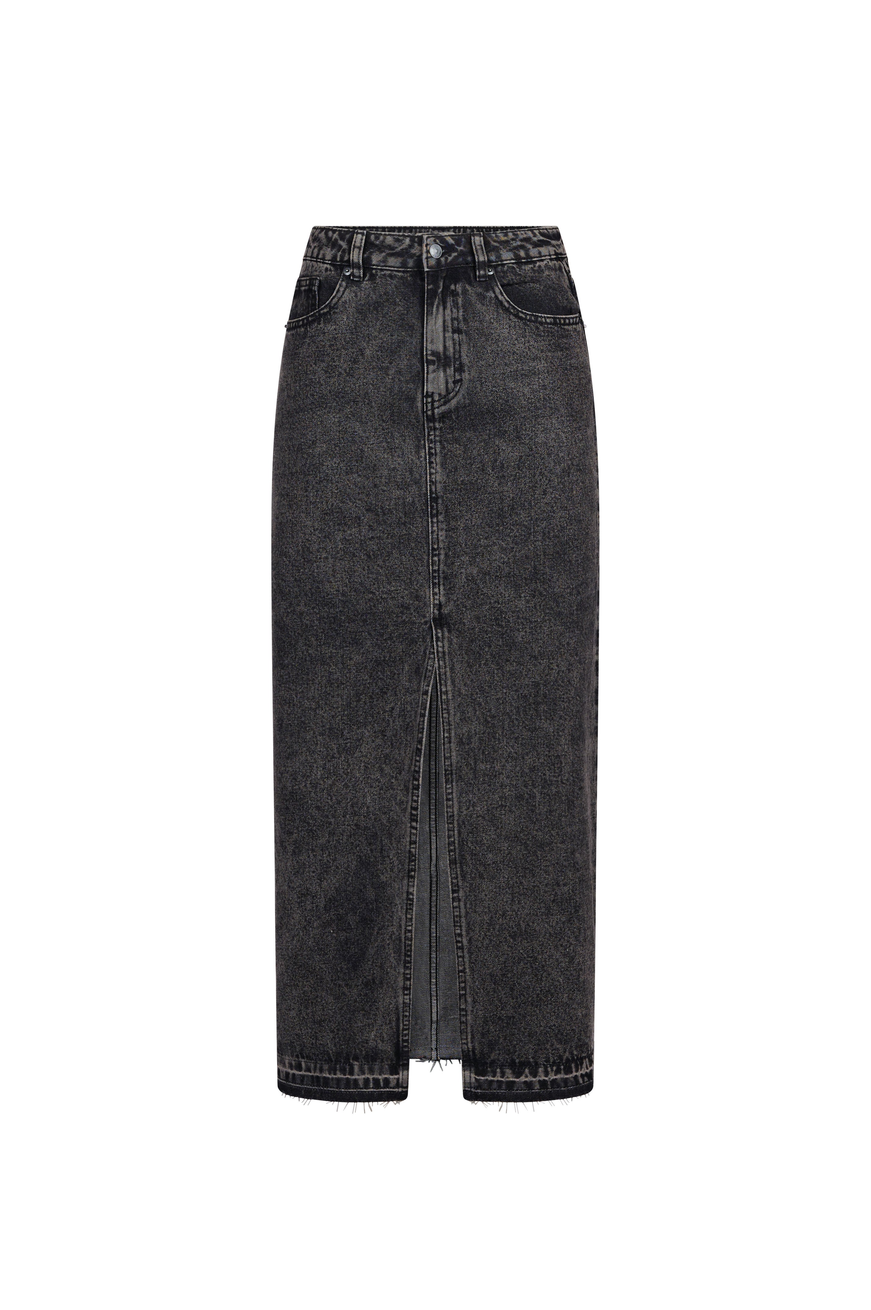 Voici la jupe qui a tout pour plaire. Avec sa coupe trapèze mi-longue flatteuse, sa fente audacieuse sur le devant et son délavage noir acidulé, elle allie à la perfection style décontracté et classique.
