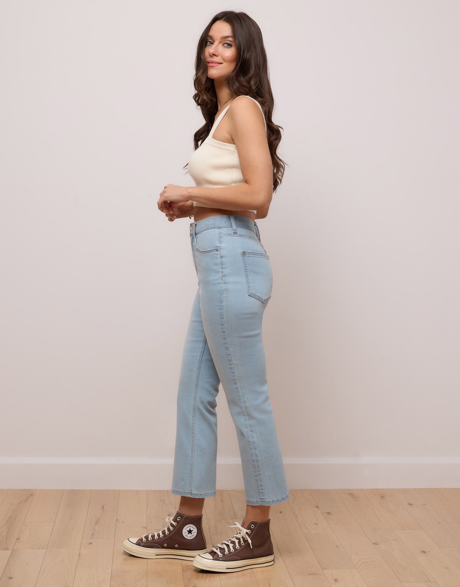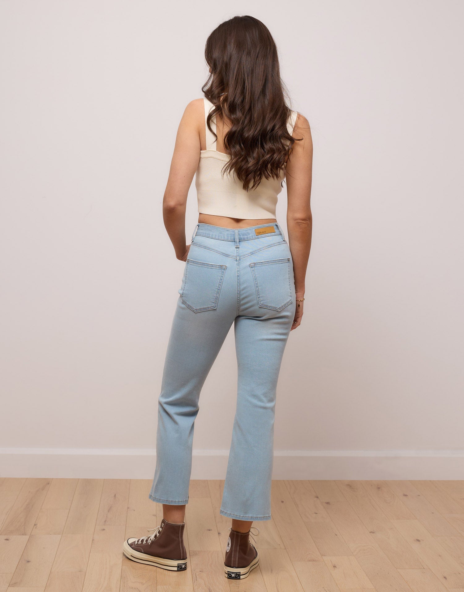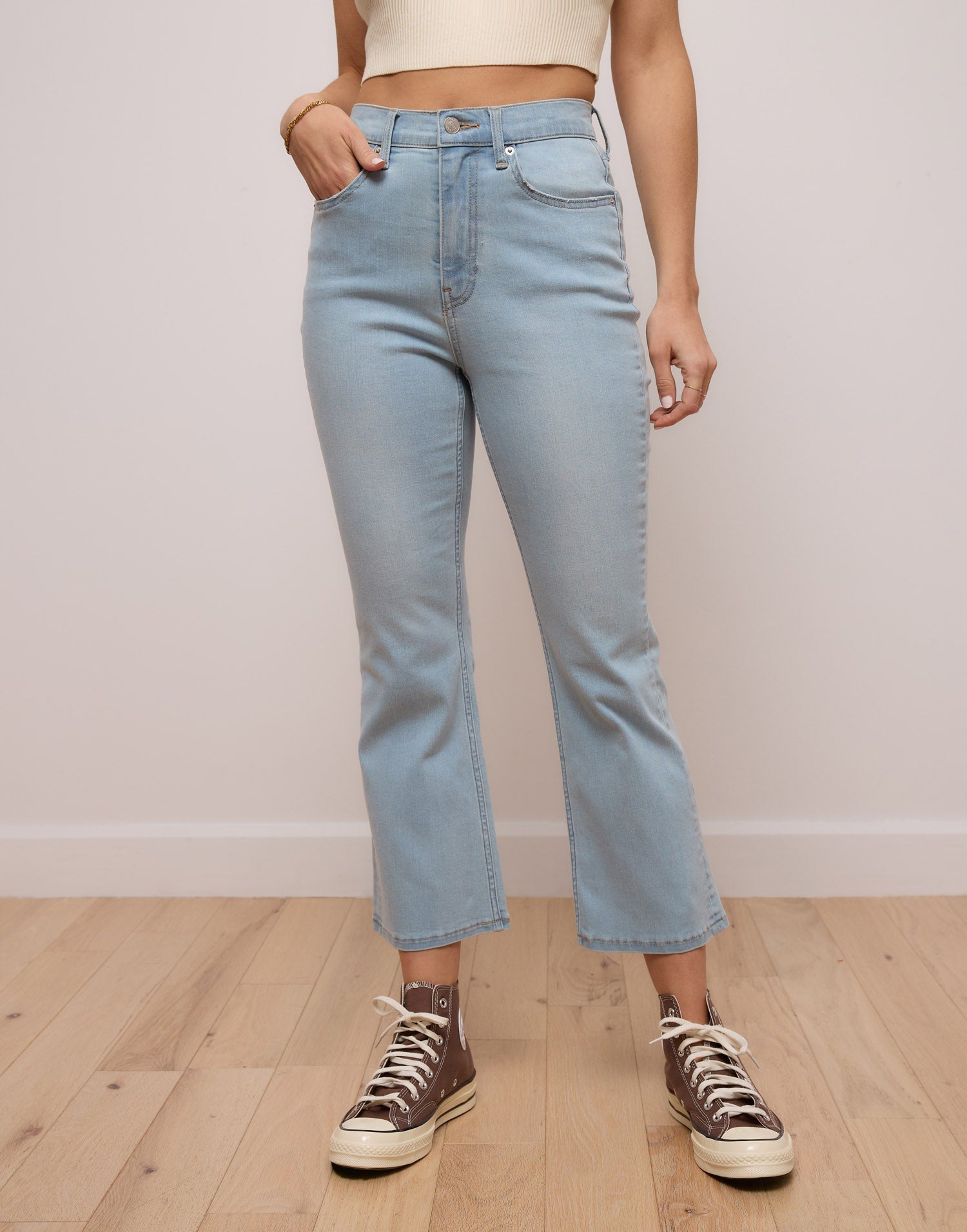 These high-rise jeans are a light blue sun-kissed denim wash with a 27" inseam. They're likely to become your new fav...