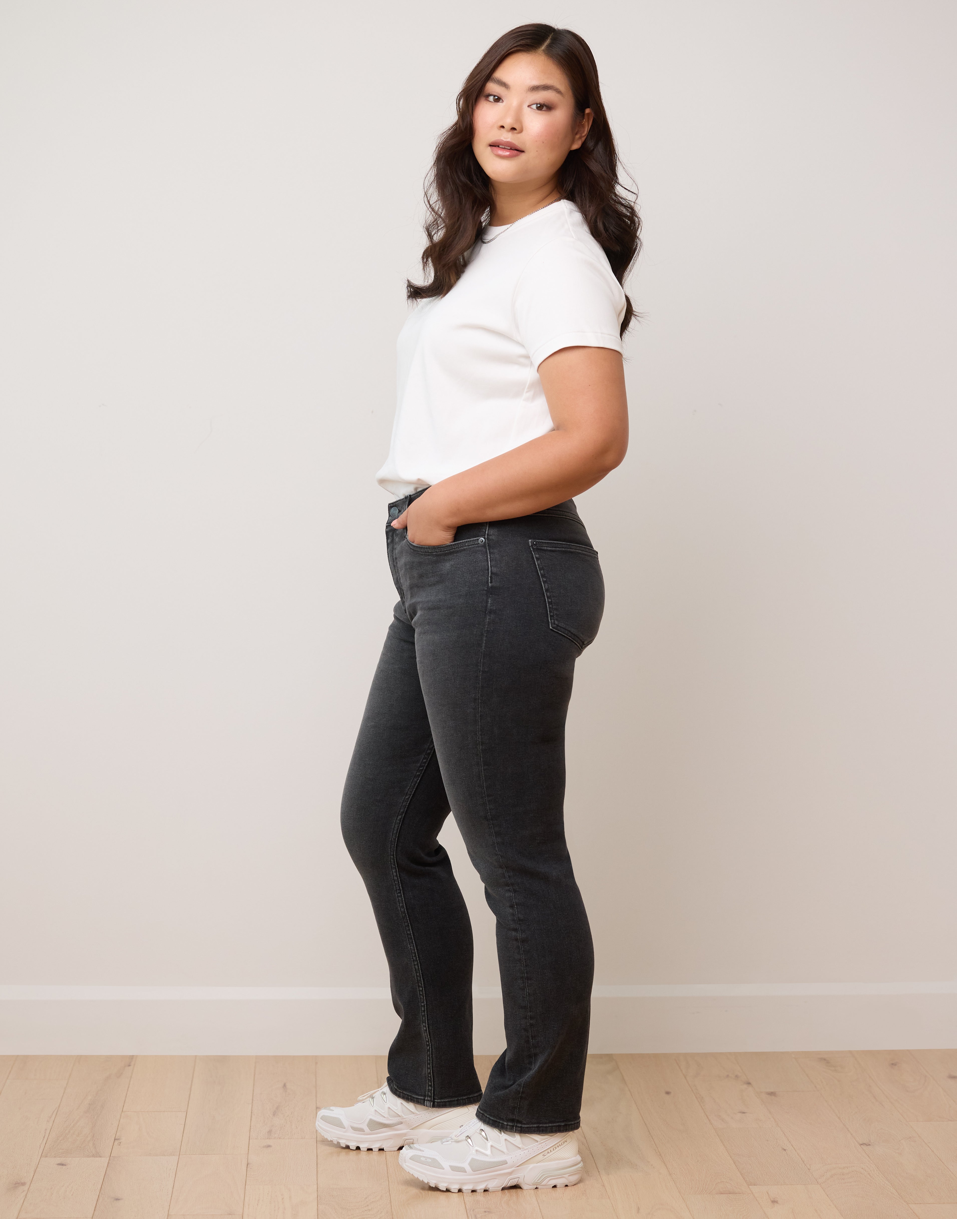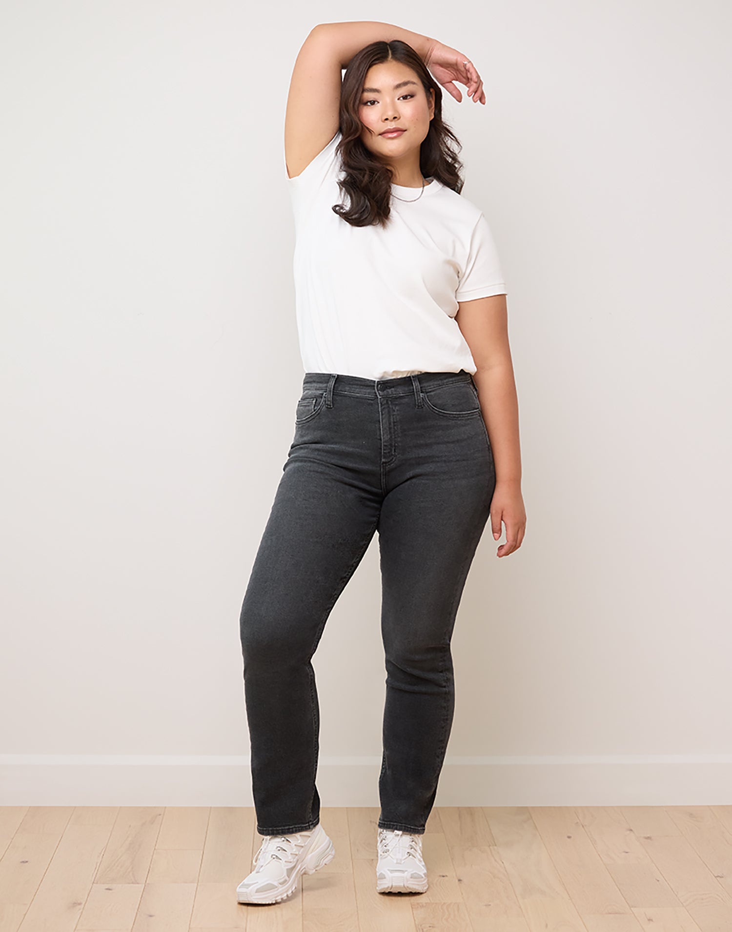 These jeans are a dark charcoal wash inspired by vintage character with light fading at the thighs, subtle whiskers, ...