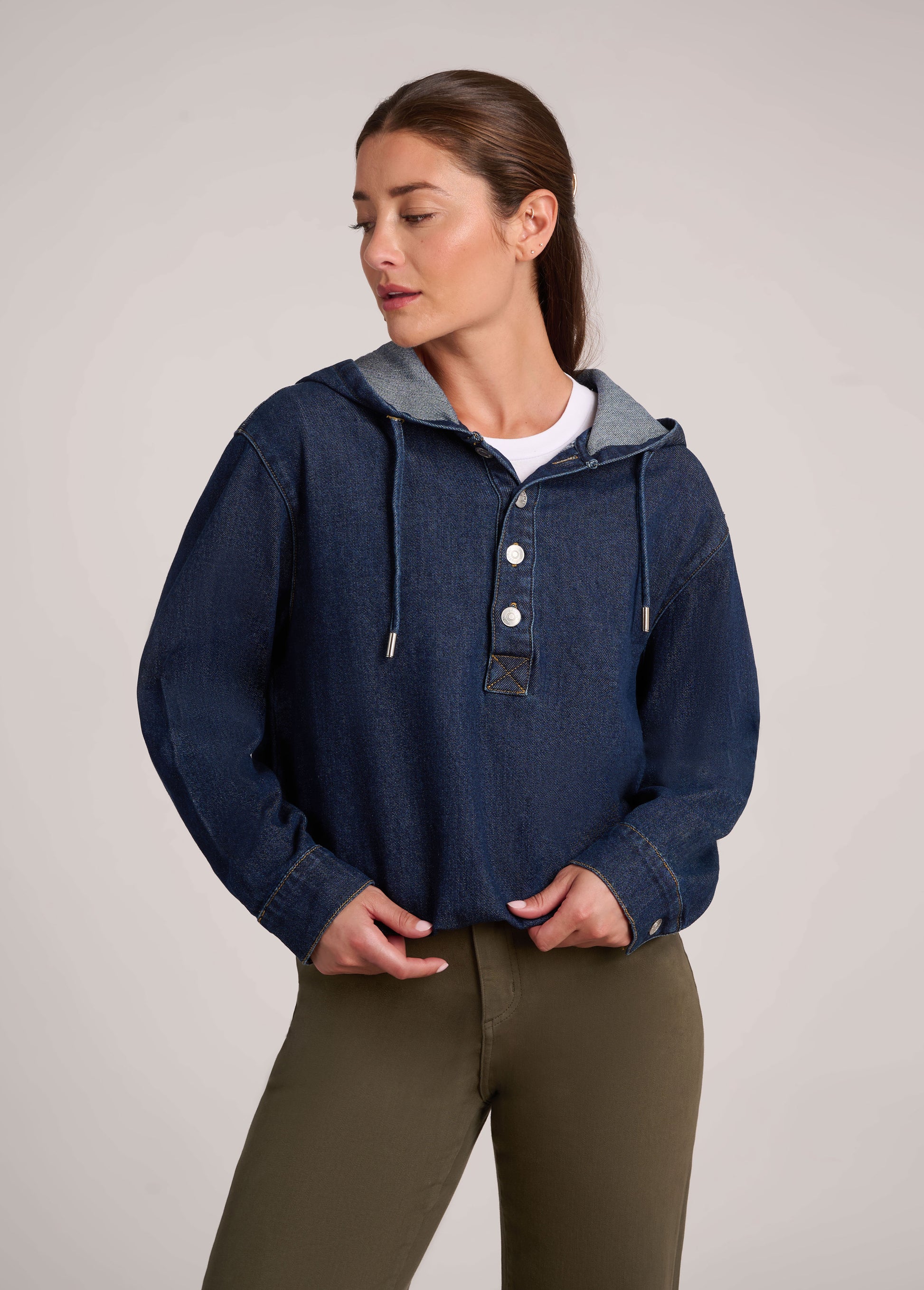 Flora is Yoga Jeans' first-ever Henley hoodie in denim form and she’s everything. With a four-button placket, a light...
