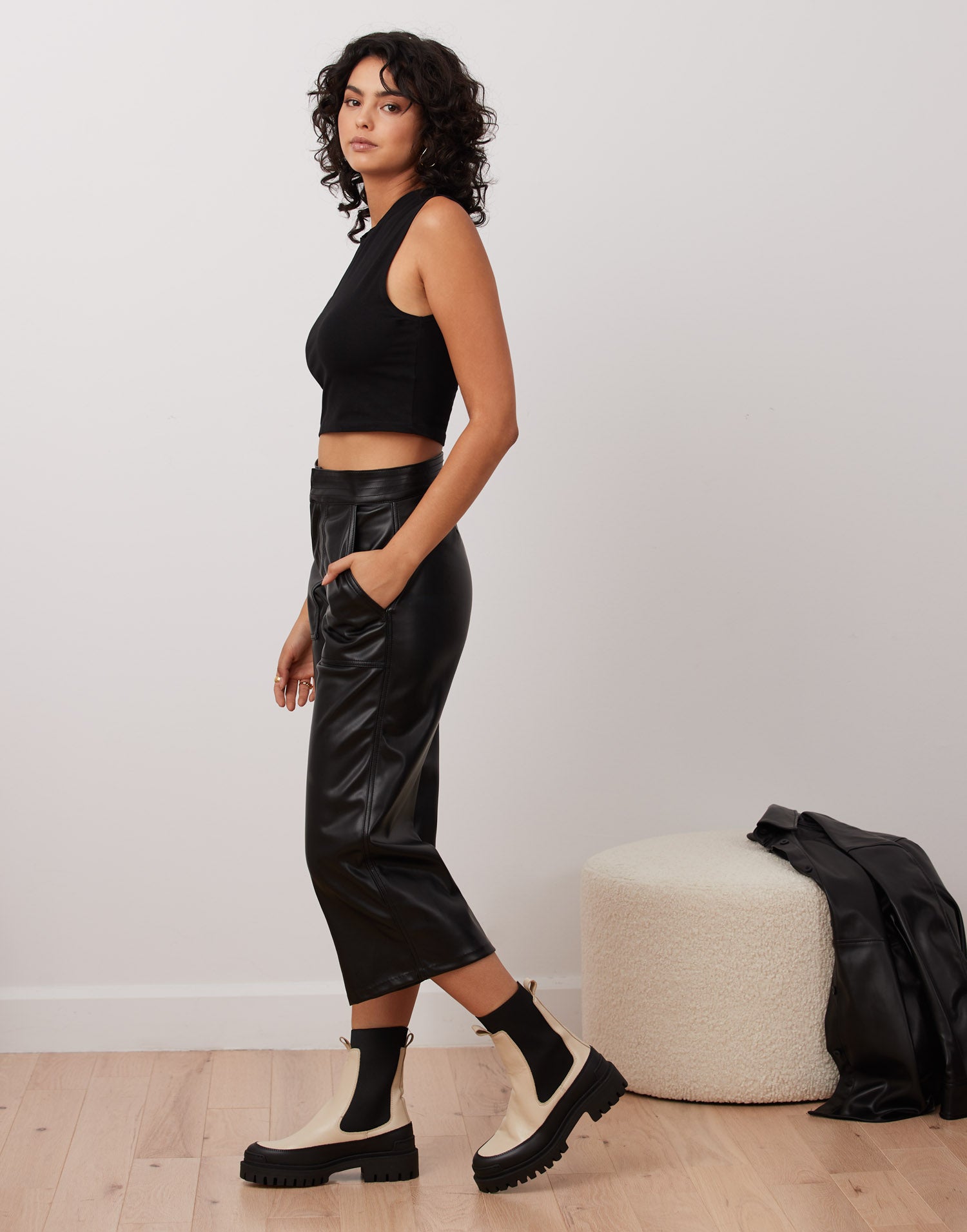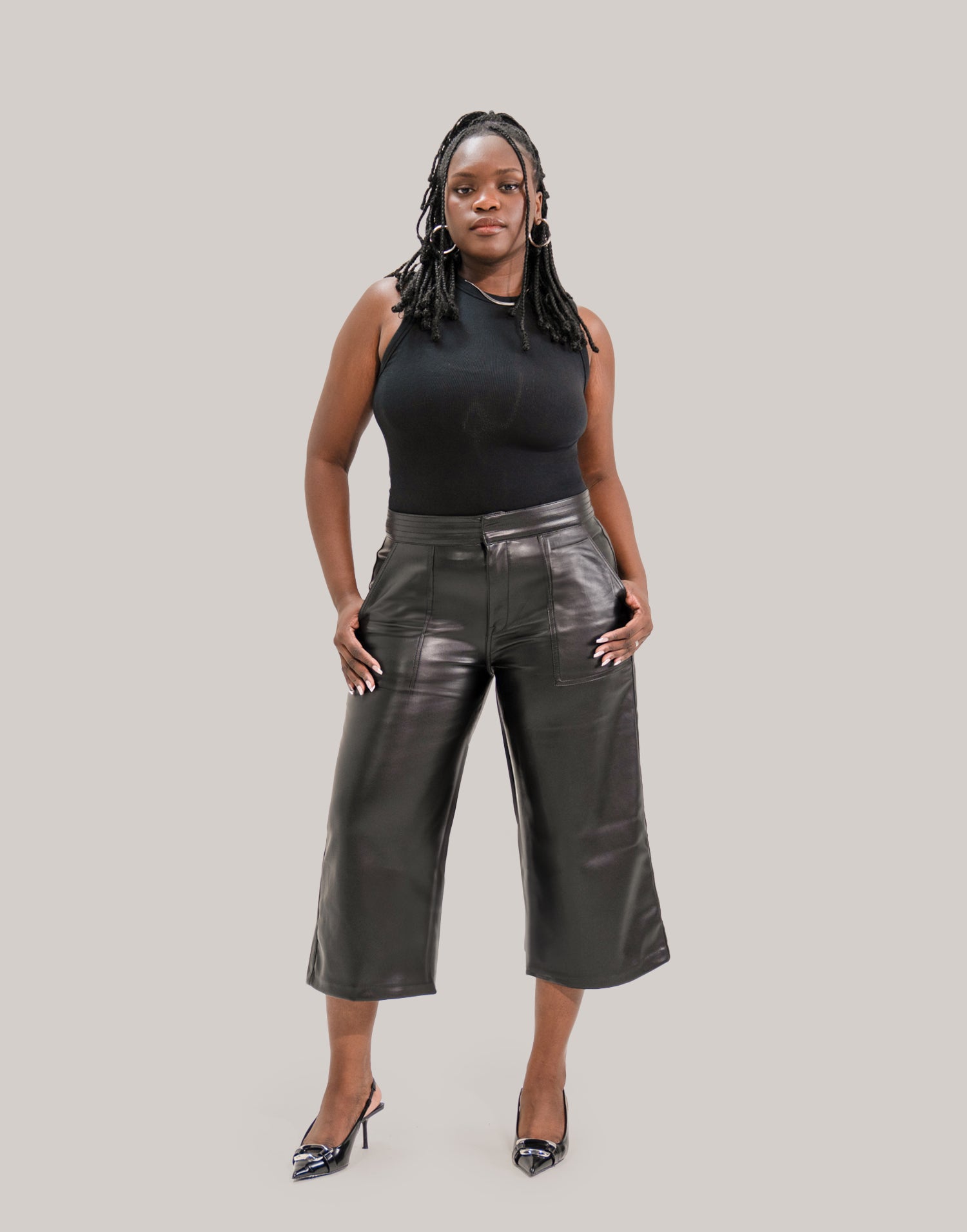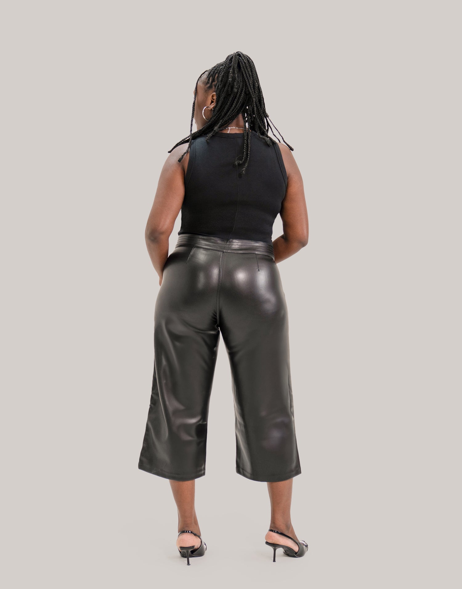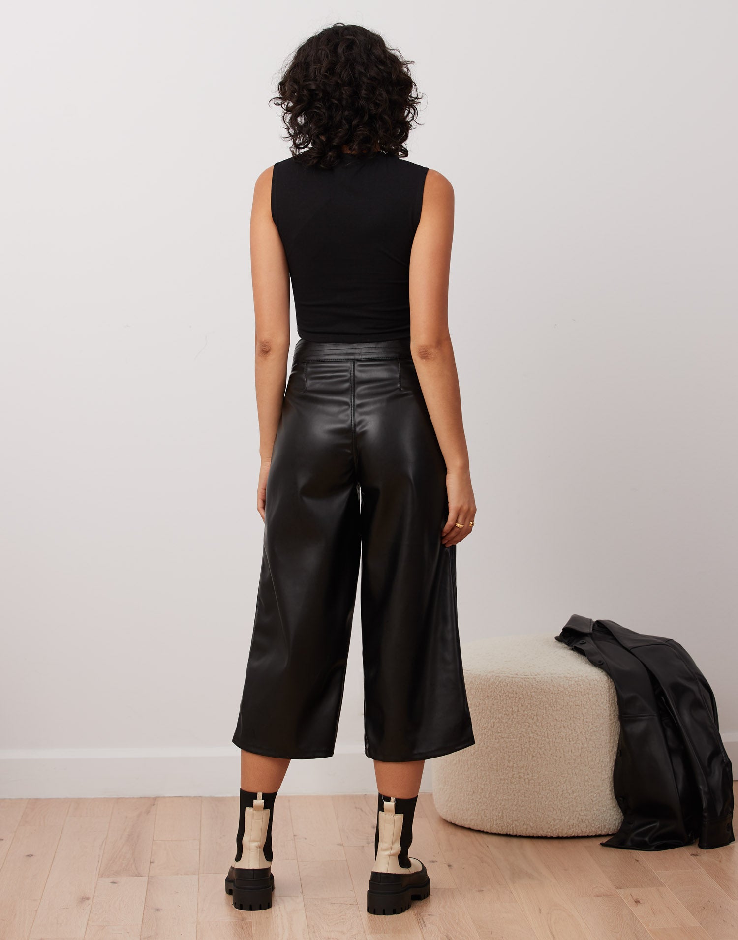 LILY WIDE LEG VEGAN LEATHER PANT / BLACK