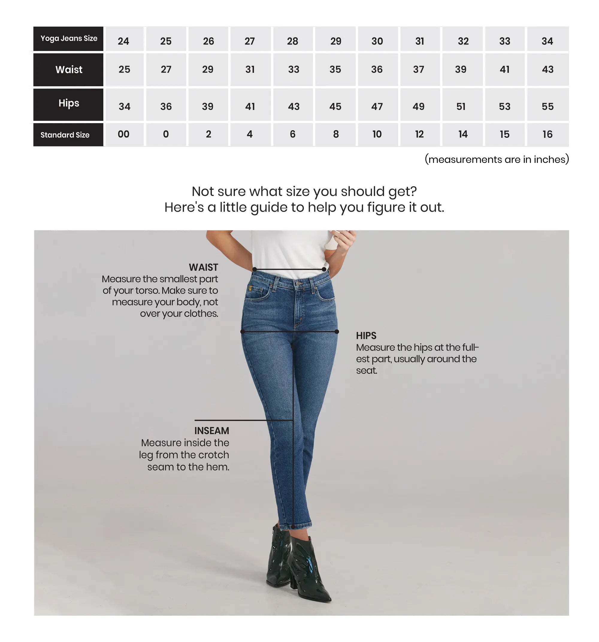 Fit: Please refer to our size guide, as each pair of our jeans has a unique fit based on its fabrication, style, and cut. For any questions, feel free to contact us at Info@yogajeans.ca for a smoother, more confident shopping experience. Check our size chart to find your perfect fit.