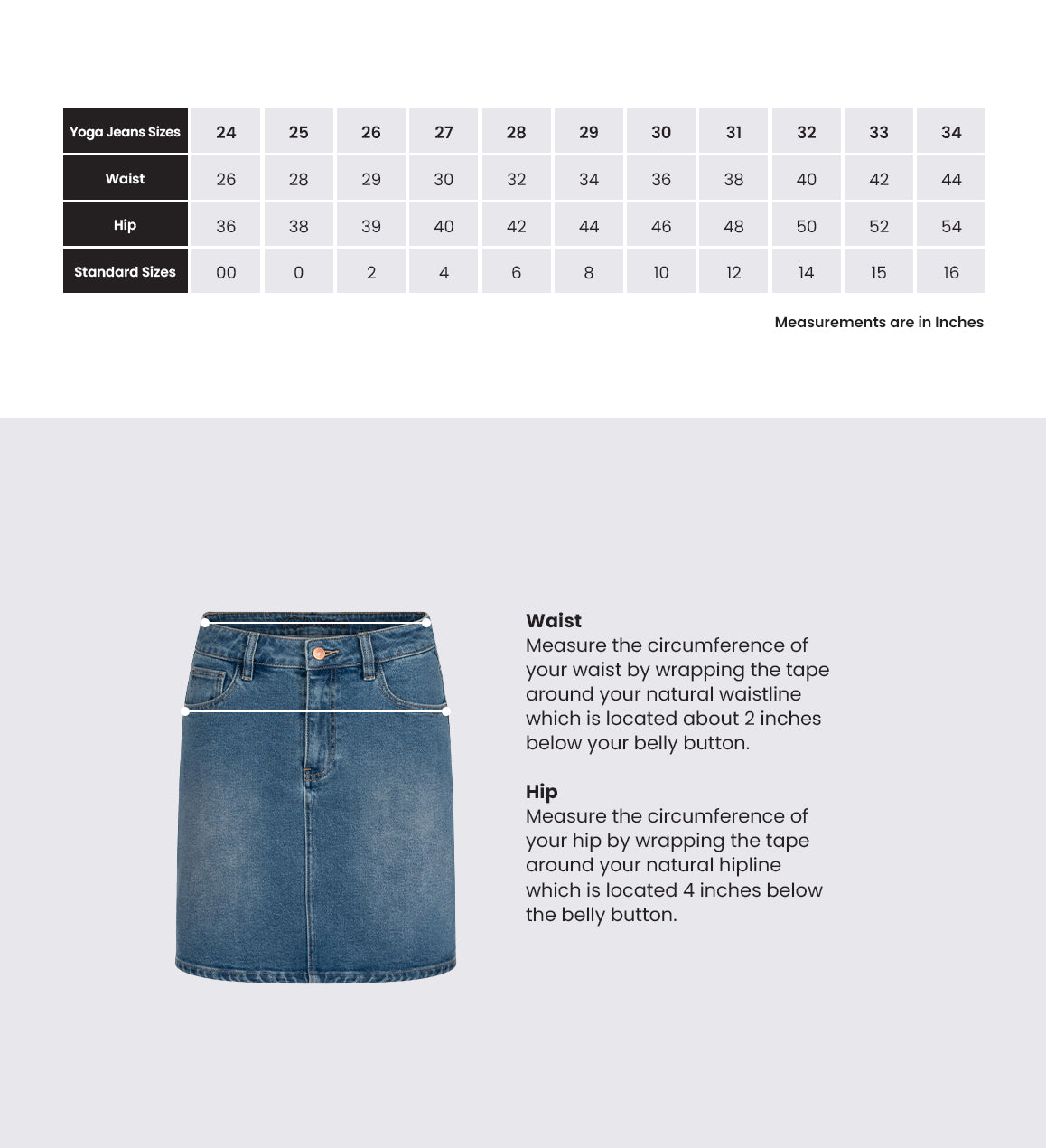 For any questions, feel free to contact us at Info@yogajeans.ca for a smoother, more confident shopping experience. Check our size chart to find your perfect fit.